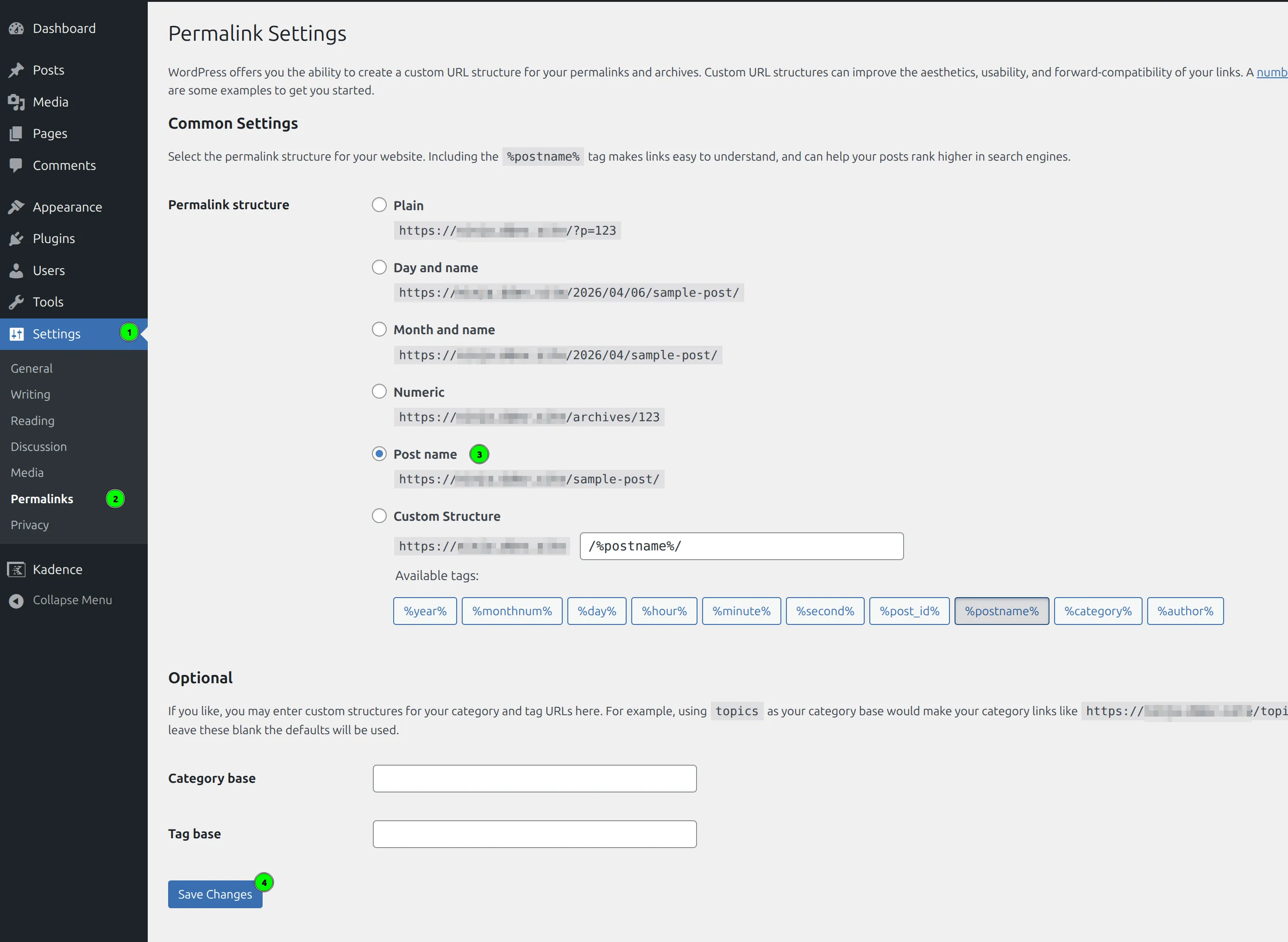 • Go to Settings > Permalinks in your WordPress dashboard.
